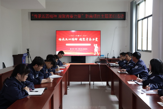 5月4日,黔南項目團支部組織開展“傳承五四精神 凝聚青春力量”主題團日活動,項目黨支部副書記、商務(wù)副經(jīng)理及全體青年員工齊聚一堂,共同紀(jì)念五四青年節(jié)。