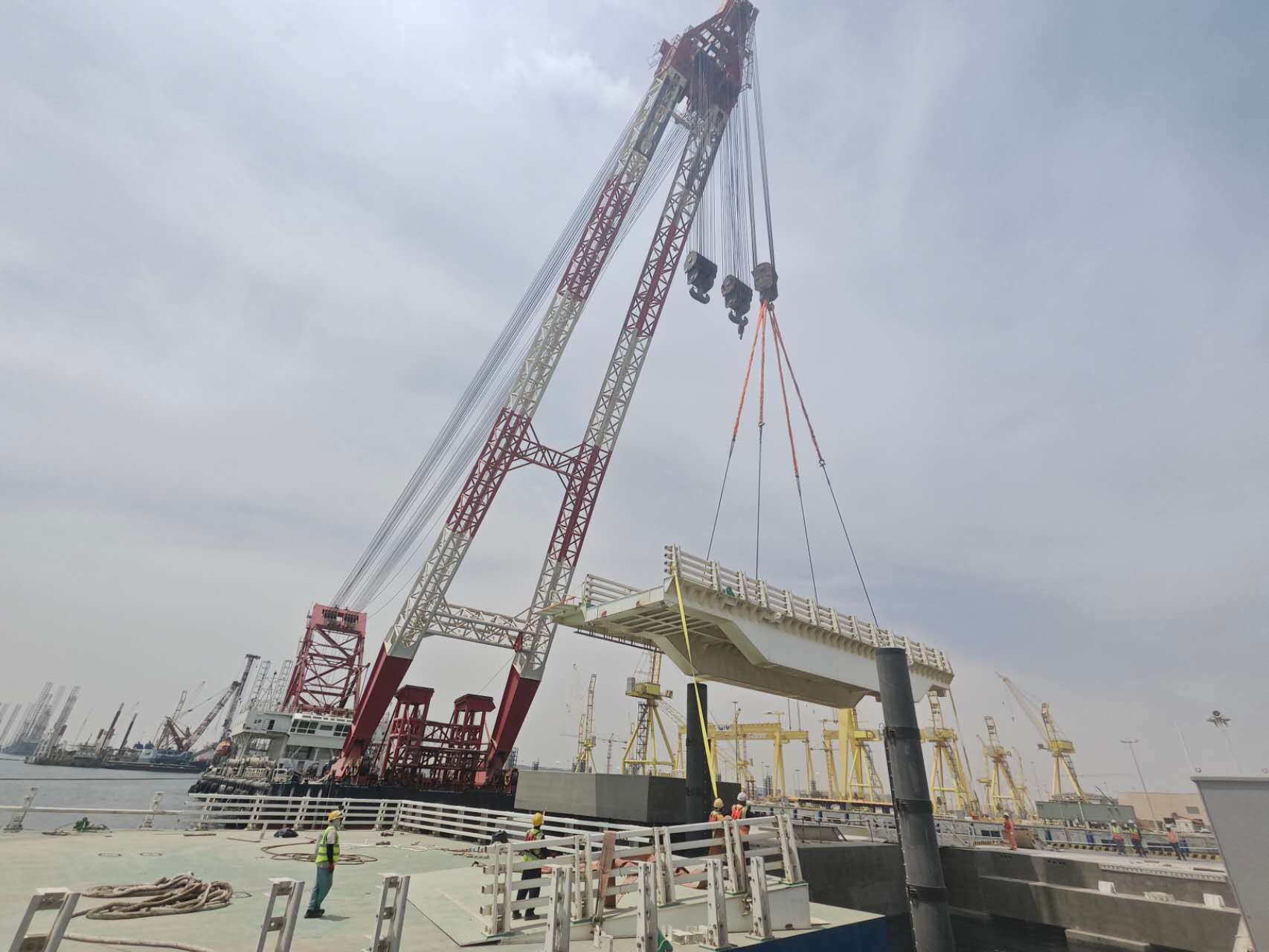 日前,沙特國王港項目關(guān)鍵控制性工程交通橋順利完成吊裝并精準(zhǔn)對位。此次吊裝采用1000噸級專業(yè)浮吊船,整個作業(yè)過程高效、安全、精準(zhǔn),充分展現(xiàn)了五局團(tuán)隊在海外大型基礎(chǔ)設(shè)施建設(shè)領(lǐng)域的專業(yè)實力和卓越的管理水平。